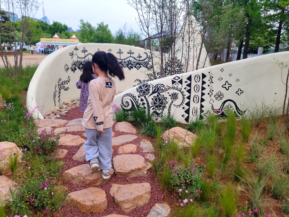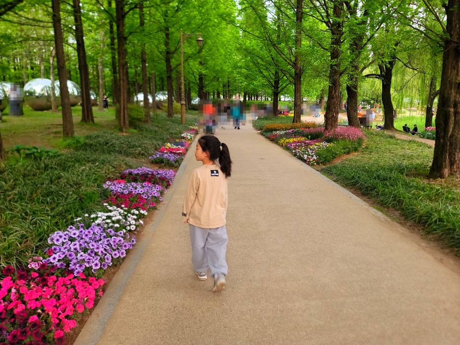 원래는 평범한 산책길이었지만, 꽃박람회로 인하여 길가에 예쁜 꽃들이 심어졌네요.