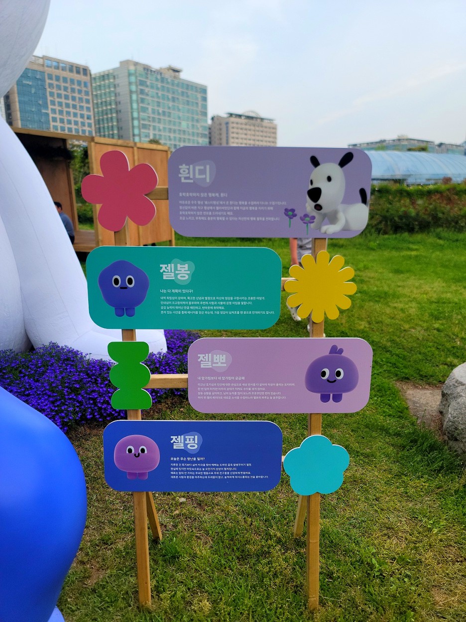 흰디, 젤봉, 젤뽀, 젤핑이라는 캐릭터입니다.