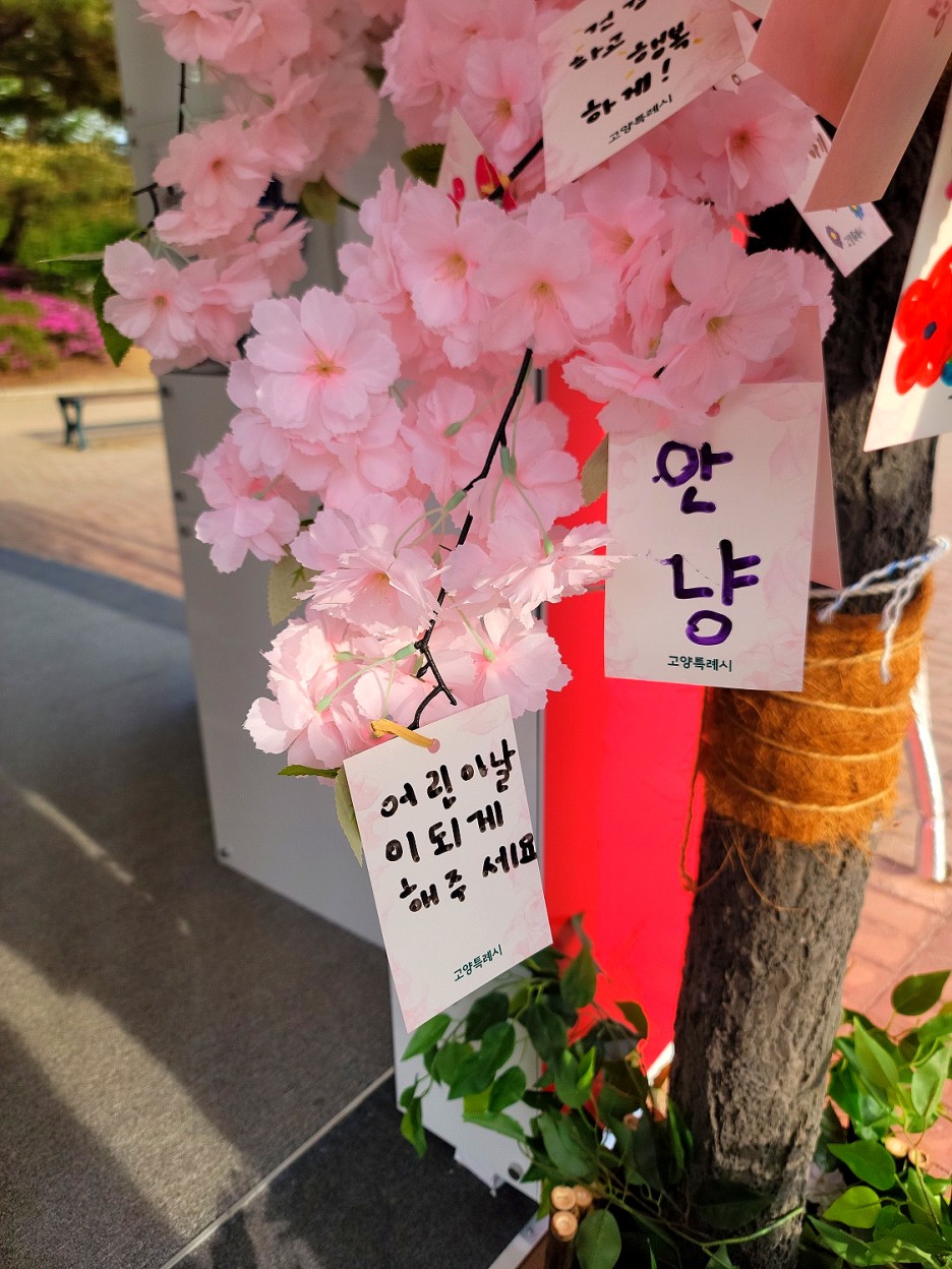그리고 벚꽃 소망나무에 소원을 써서 거는 체험도 해보았어요.