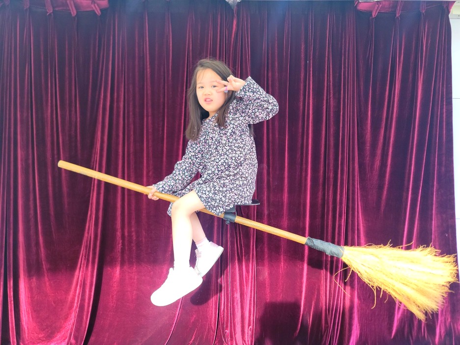 마법 빗자루를 타고 날아가는 듯한 사진을 연출할 수 있습니다.