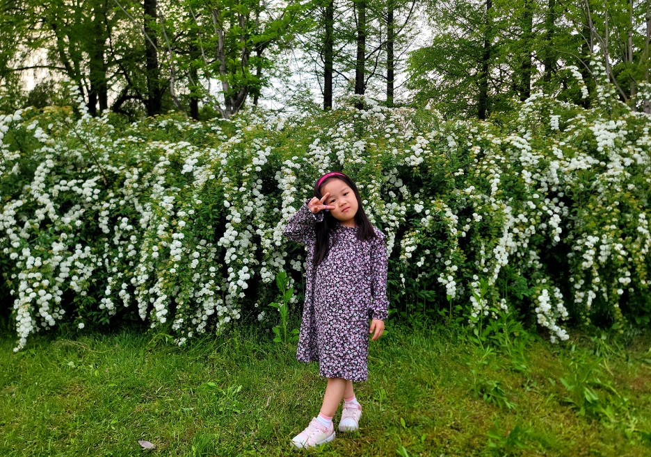 꽃 들 사이에서 예쁘게 포즈~