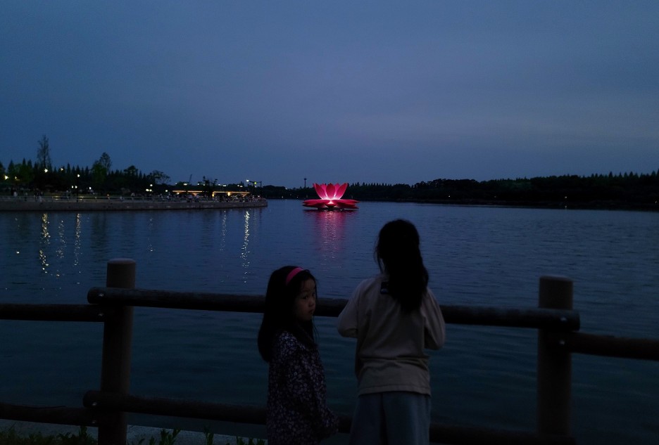 일산호수에는 연꽃이 피고 지는 퍼포먼스를 보여줍니다.